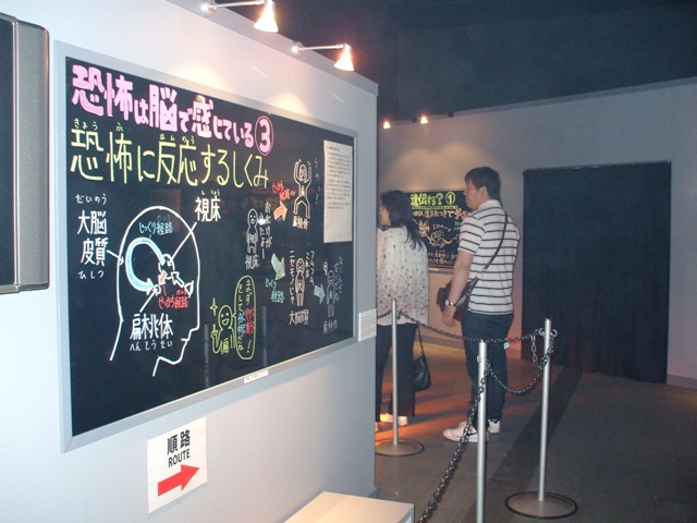 で、お化け屋敷が終了すると手書きのパネルによる恐怖についての解説があり、主に脳とかについての理論が多いですが、冒頭に書いたとおりもっと文化的な怖さへの解説も欲しかったです。入り口に書いてあった「なぜ怖いのか」みたいな疑問も全ては解決してないし、ある程度予備知識がないと解説も分からないかも。