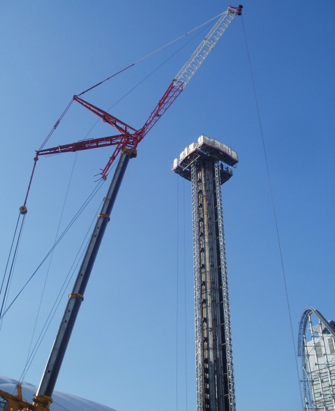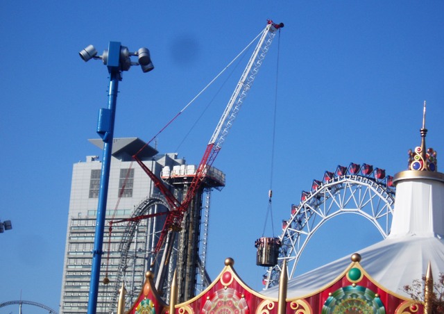 実はここ4日くらいええじゃないかは点検に入っていて、今日も朝行ったらファーストの横にクレーン車が止まっていて、こりゃダメかと思ったんですがなんと1時ごろから営業開始!効率は相変わらずでしたがこれも最後尾に乗れて、振動が増したとは言われますが自分はこれも全然許容範囲というか、これぐらいじゃなきゃマイルドになっちゃうだろ?激しさが売りなんだからもっとガンガンきてくれてもいいぜ位の気持ちじゃなきゃ楽しめないっしょ。たださすがに5年経ち実感されてきたのが塗装の色落ち。見るものに恐怖を与えていた真紅のレールは今ではタイタン色(笑)赤が薄れてピンクっぽくなってしまっています。他の3機が無彩色ばかりでつまらんと思ってるので、是非塗りなおしてその気迫を取り戻してほしいと思います。