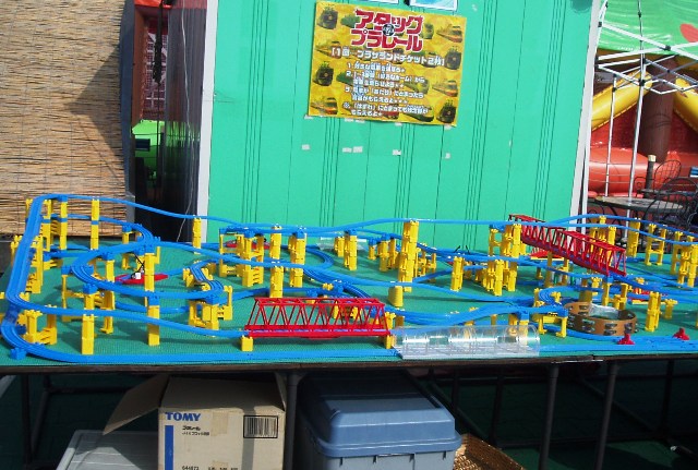 簡単に言えばあみだくじです。プラレールの発車場所を選んでぐねぐねしたレールの先で当たりにたどり着いたら景品がもらえるってわけです。ただ各所にランダムポイント切り替えを配置してきてるんで用は運なんですがね。見てて楽しいわ。なんか向ヶ丘遊園でやってたプラレールイベント思い出します。ディオスが目の前にあったのにな・・まぁいいや
